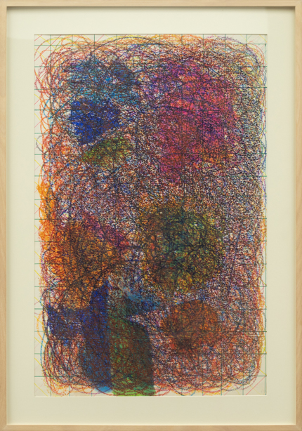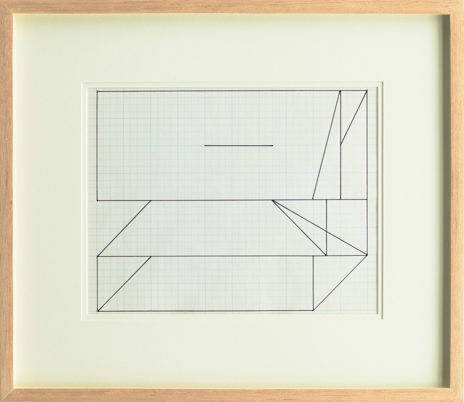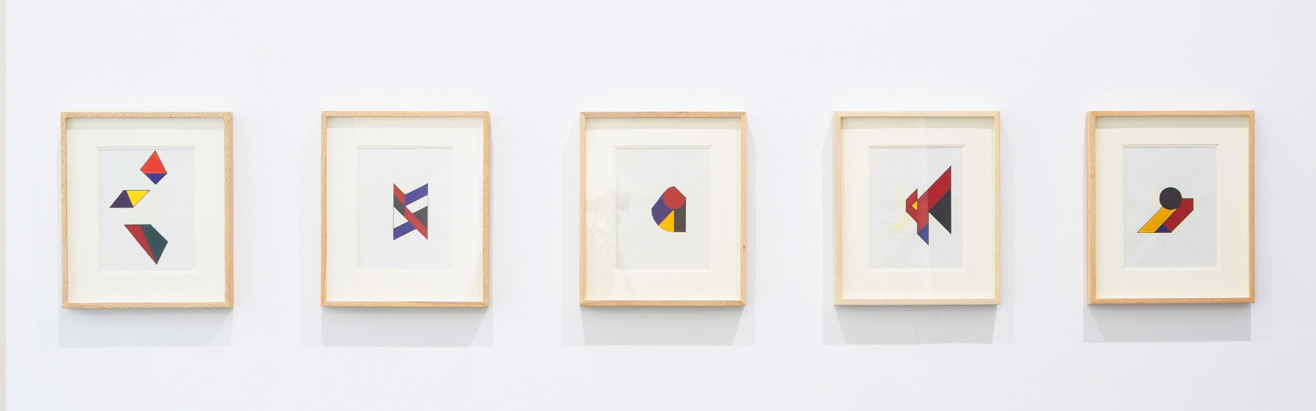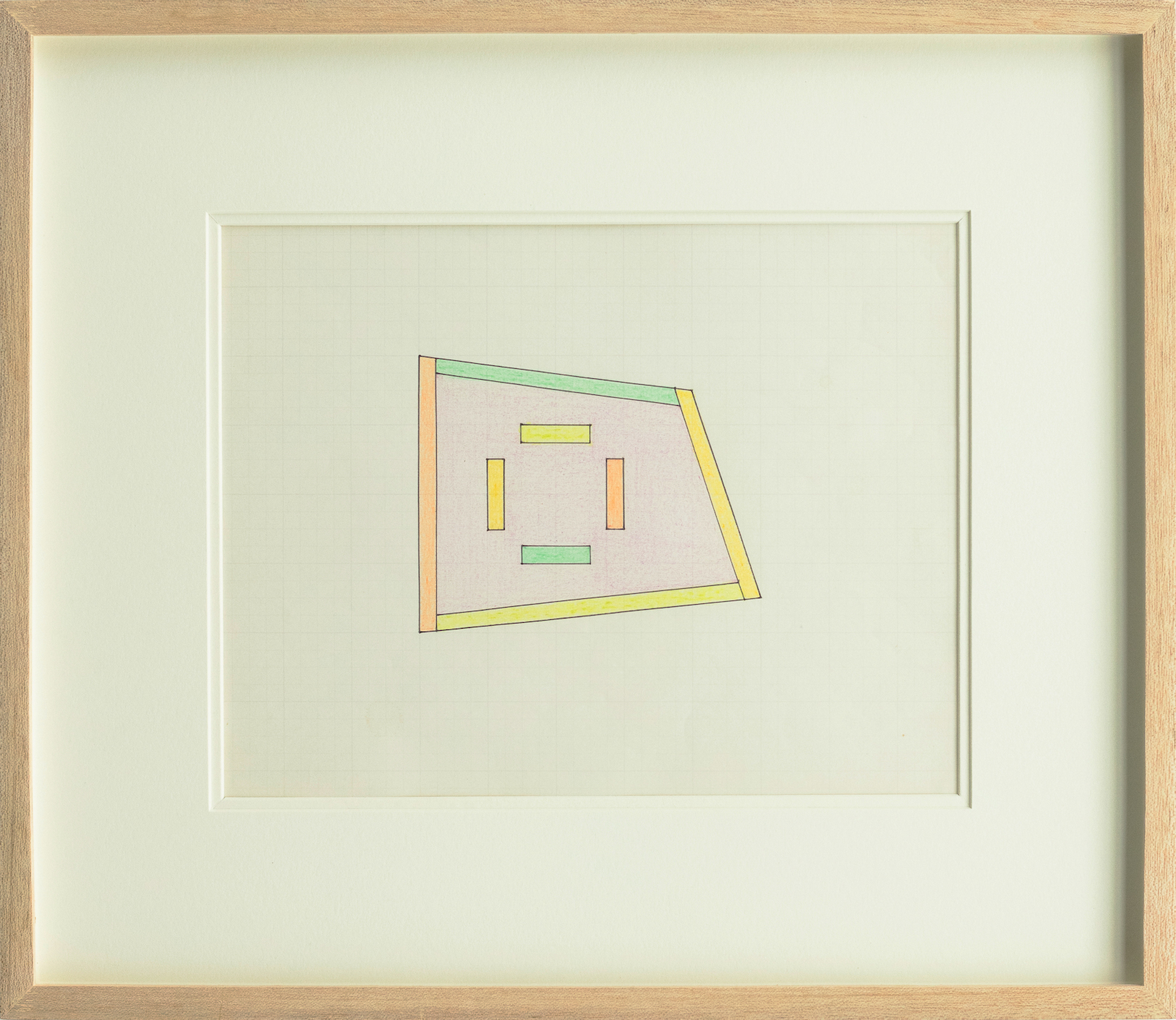 For both artists, drawing was not preparatory but generative, a complete act in itself. Valledor’s works show his architectural precision. Many are on graph paper, the faint grid acting as scaffold and rhythm. Using pencil and felt-tip marker, he found a beating tempo between order and improvisation, echoing the jazz that kept him moving. Some shapes fill with dissolving gradients and dotted passages that drift like little confetti rivers, revealing a quiet kinship with his beloved cousin, Villa.
