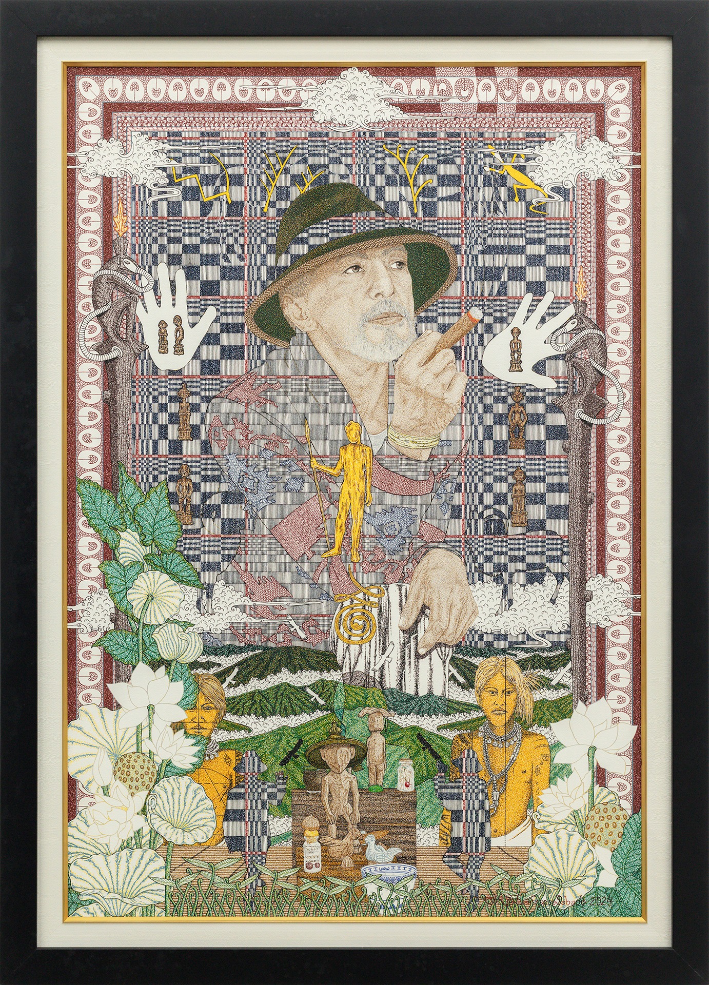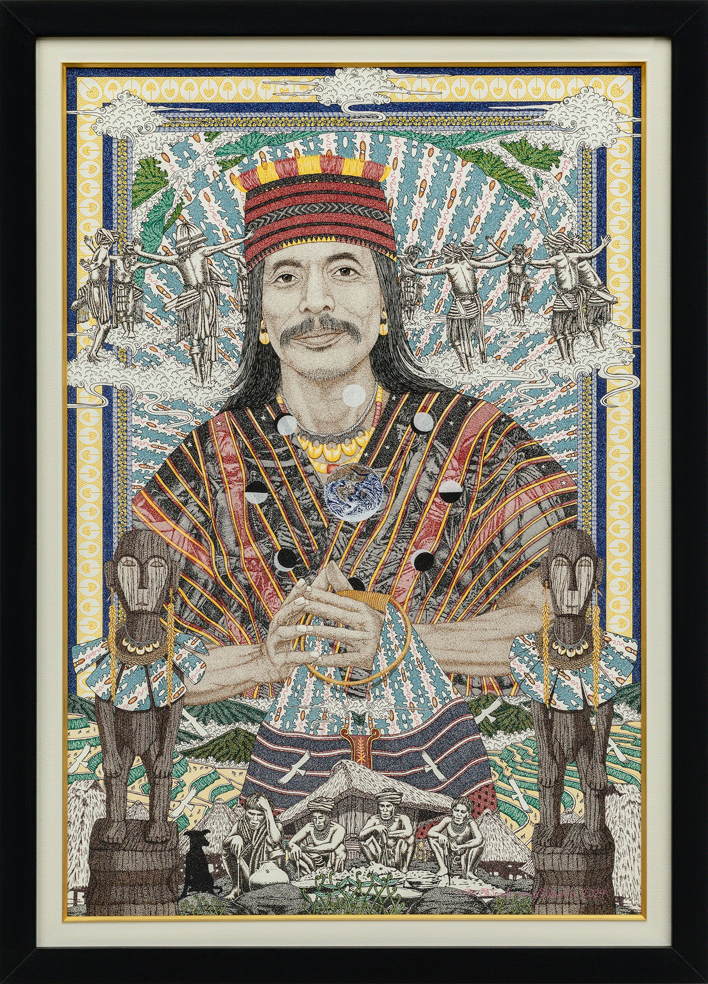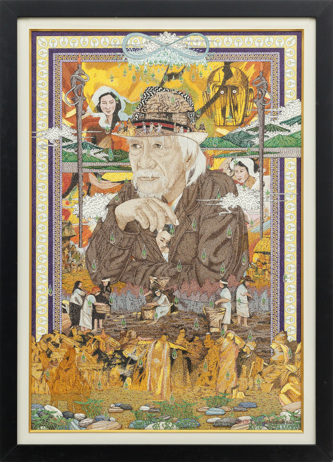 Beyond the ability to unify and assemble varied elements to become a composite image, his works bear evidence of the artist’s active processing of his subject’s life and work in forwarding cultural art forms, beliefs, and traditions.