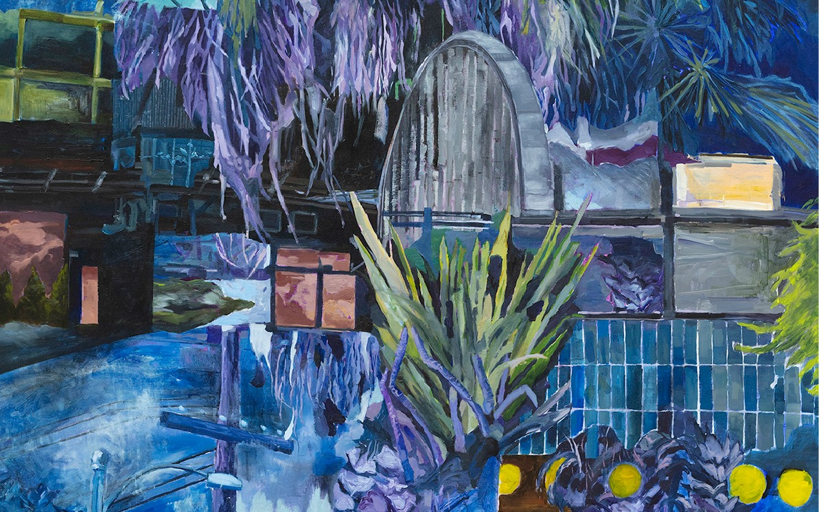 Across these warped formations, tendrils, branches, roots, and other sinuous, irregular forms draw us into a new vocabulary for understanding the landscape as a genre. Enter Is Jumalon’s terrain: a fertile ground that unfixes our traditional ideas of the landscape as a pastoral, panoramic ideal of a place. Any trace of romanticism that exists here is shattered by shards and harsh angles of color that evoke a mutable logic: here are habitats in the service of suggestion and intimacy.
