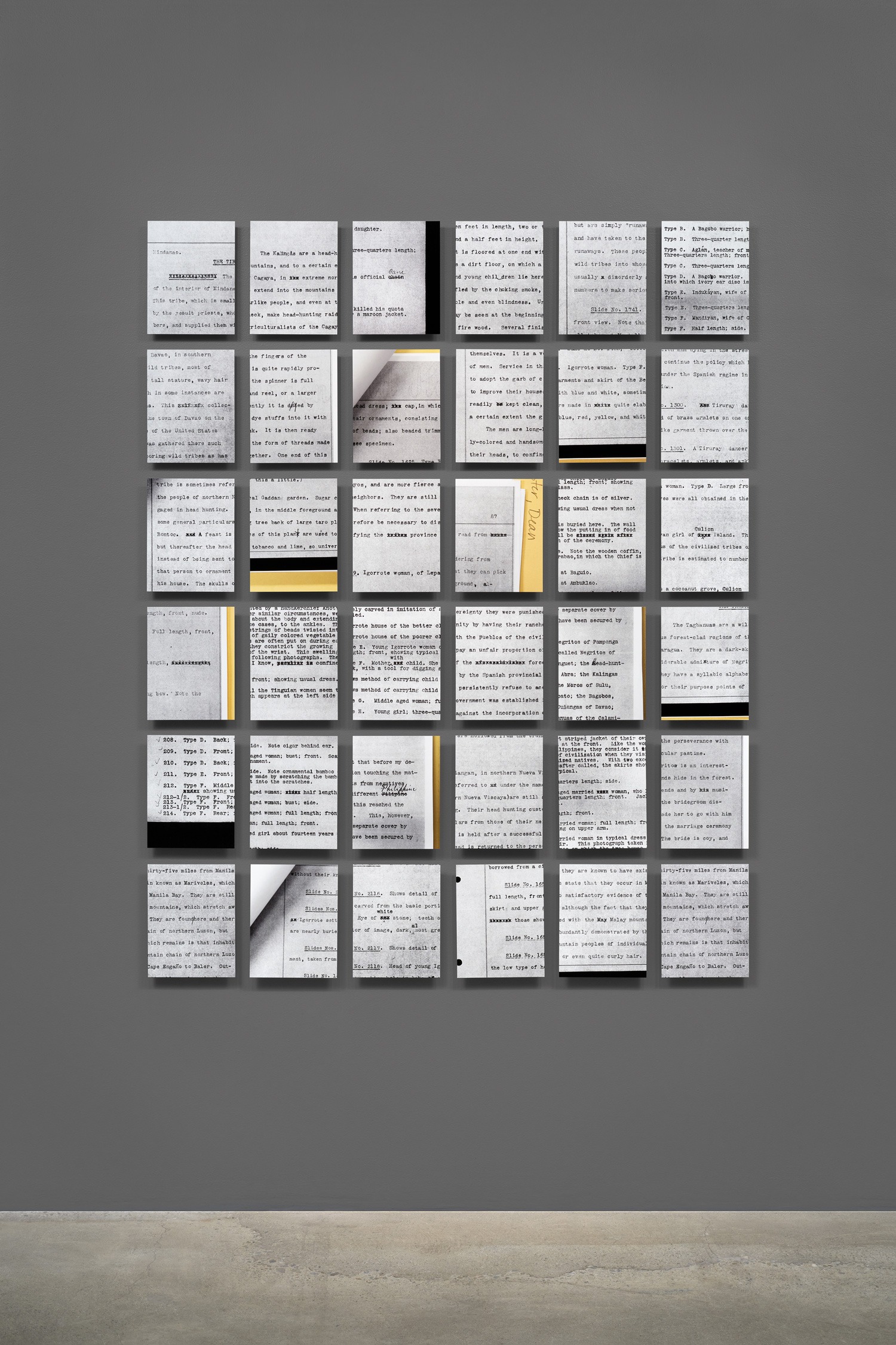 Stephanie Syjuco (b. 1974, Manila, Philippines; lives and works in Oakland, California) is known for her investigative, research-based practice encompassing photography, sculpture, and installation. Progressing from handmade and craft-inspired mediums to digital editing and archive excavations, her work employs open- source systems, shareware logic, and capital flows to scrutinize issues related to economies and empire. Initially exploring image-based processes and their implications in constructing racialized, exclusionary narratives of American history and citizenship, she has shifted her focus to the history- building and myth-making undertaken by Filipinos in their newfound independence. From critiquing images of American colonial anthropology in the Philippines, to investigating historical museum collections and shuttered newspaper archives, her projects attempt to reframe and “talk back” to the archive.
