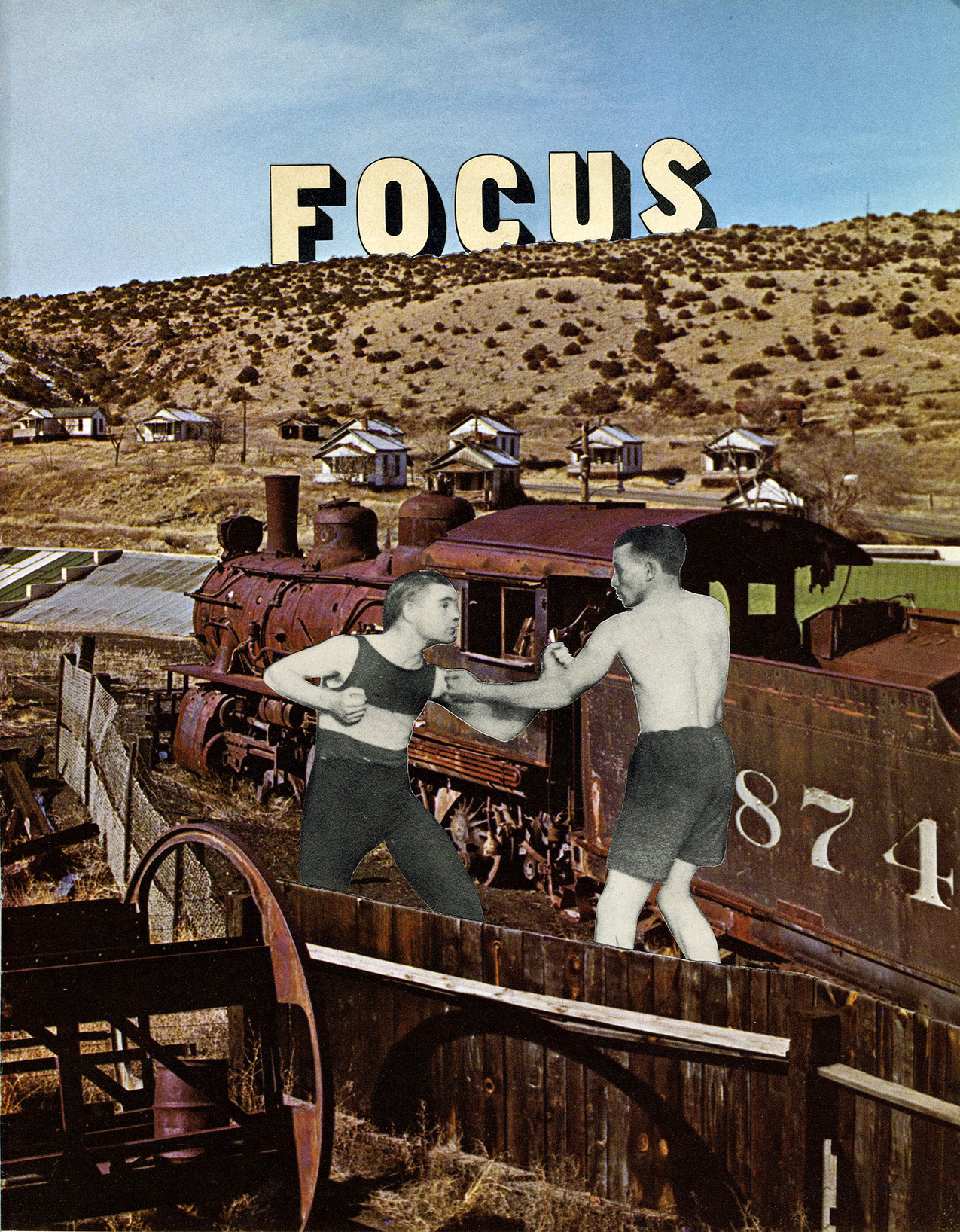 She likens her mix and match of images to dating. “If the images seem like their playfully flirting with one another, at the same time, ‘never trusting and committing’, then I'll make them stick together.” The resulting affair between contrasts or ironies becomes something else entirely. For example, by adding the text “mamaw” (monster) into the muscle man-graveyard mix, the transformation from man to beast becomes complete. In each new “affair”, she purchases a new identity for the images by defining the images against each other.
