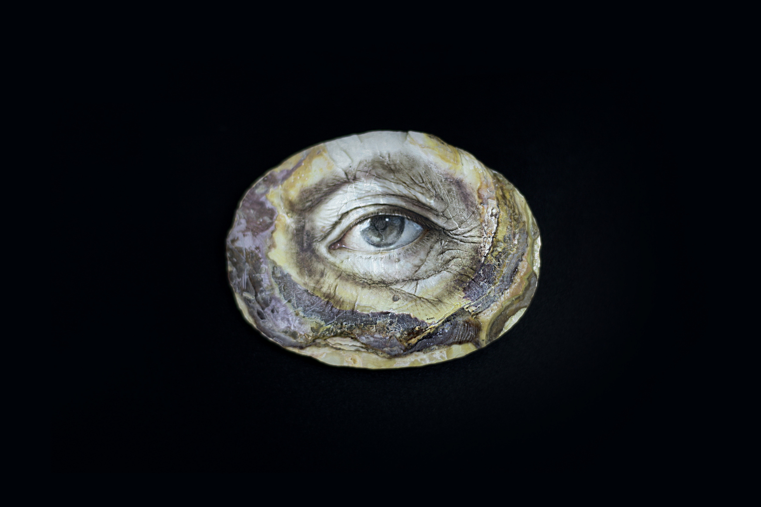 Halili, on the other hand, takes note of the minute details, skillfully painting portraits on pieces of shells. His portraits are intimate and still. Viewers are not exactly engulfed by the size, but are curious to zero in on the small details, from his tiny impressions of waves to details of laugh lines and eyelashes.
