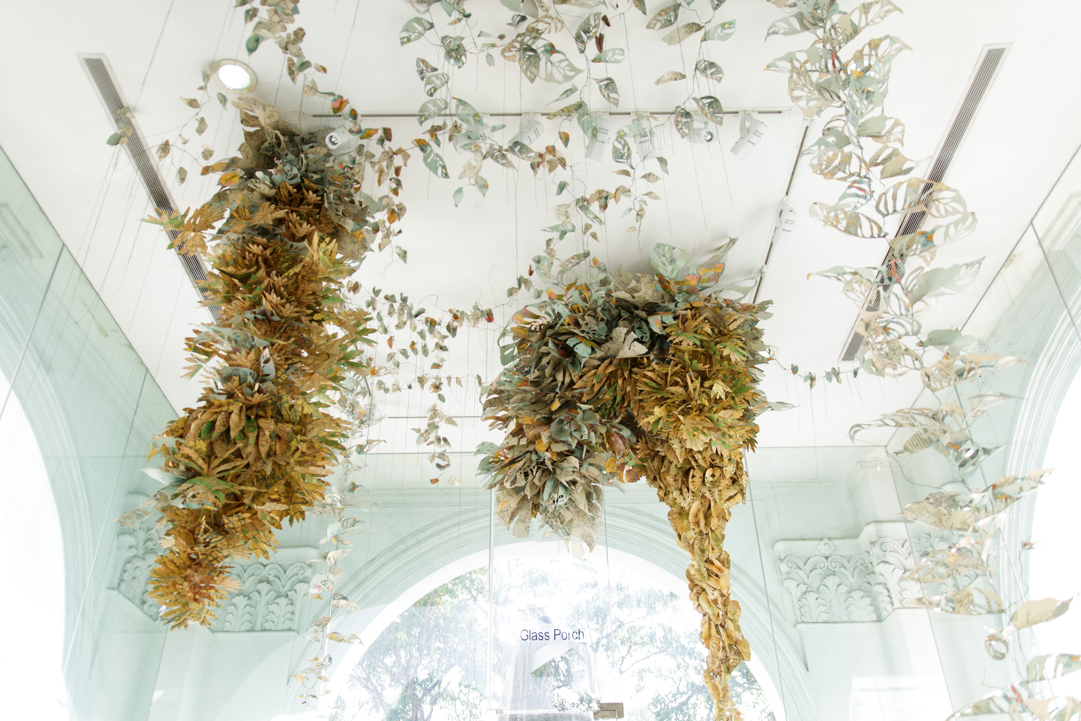 Cut-paper artist Ryan Villamael (b. 1987, Laguna, Philippines; lives and works in Los Baños, Philippines) presents a new iteration of his ongoing, site-specific installation Locus Amoenus, assembled specially for the fair. Villamael transforms colonial and contemporary maps of the Philippines into intricately cut foliage resembling Monstera deliciosa, an invasive tropical plant known to thrive in conquering any space inhabited. The work conjures a lush canopy while interrogating histories of migration and empire. Each version of Locus Amoenus responds to its environment, with previous stagings across seven venues, including Haus der Kulturen der Welt (Berlin) and the Singapore Biennale. Villamael will also exhibit a series of cut-paper map sculptures encased in glass bell jars, a body of work that made its U.S. debut in his January 2025 solo exhibition ISLES at Silverlens New York.