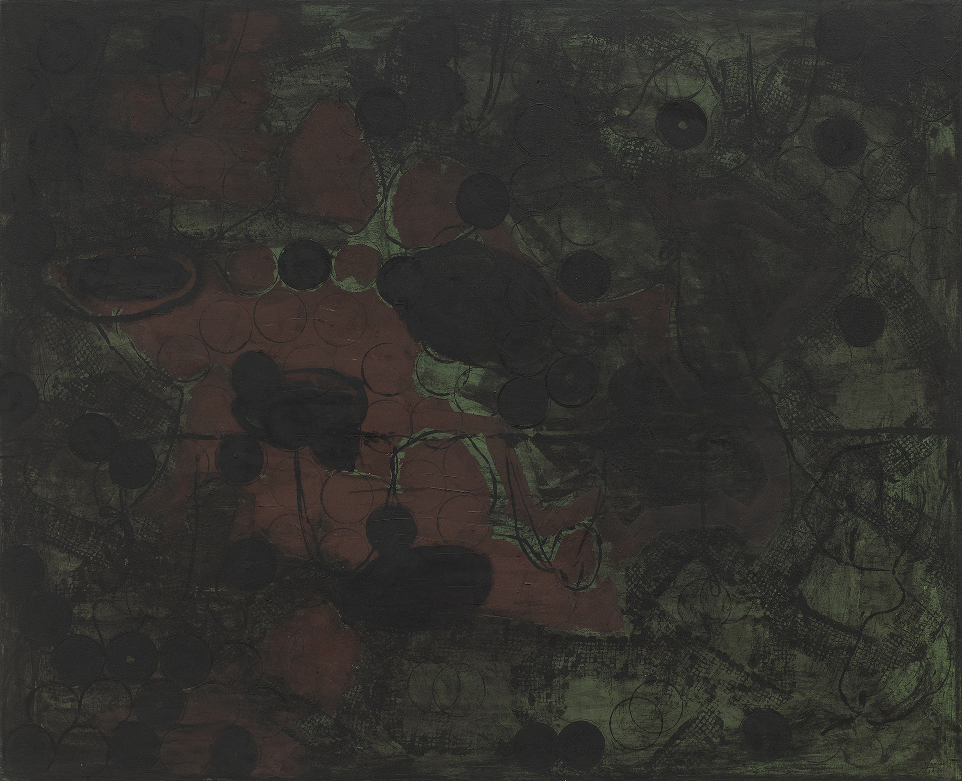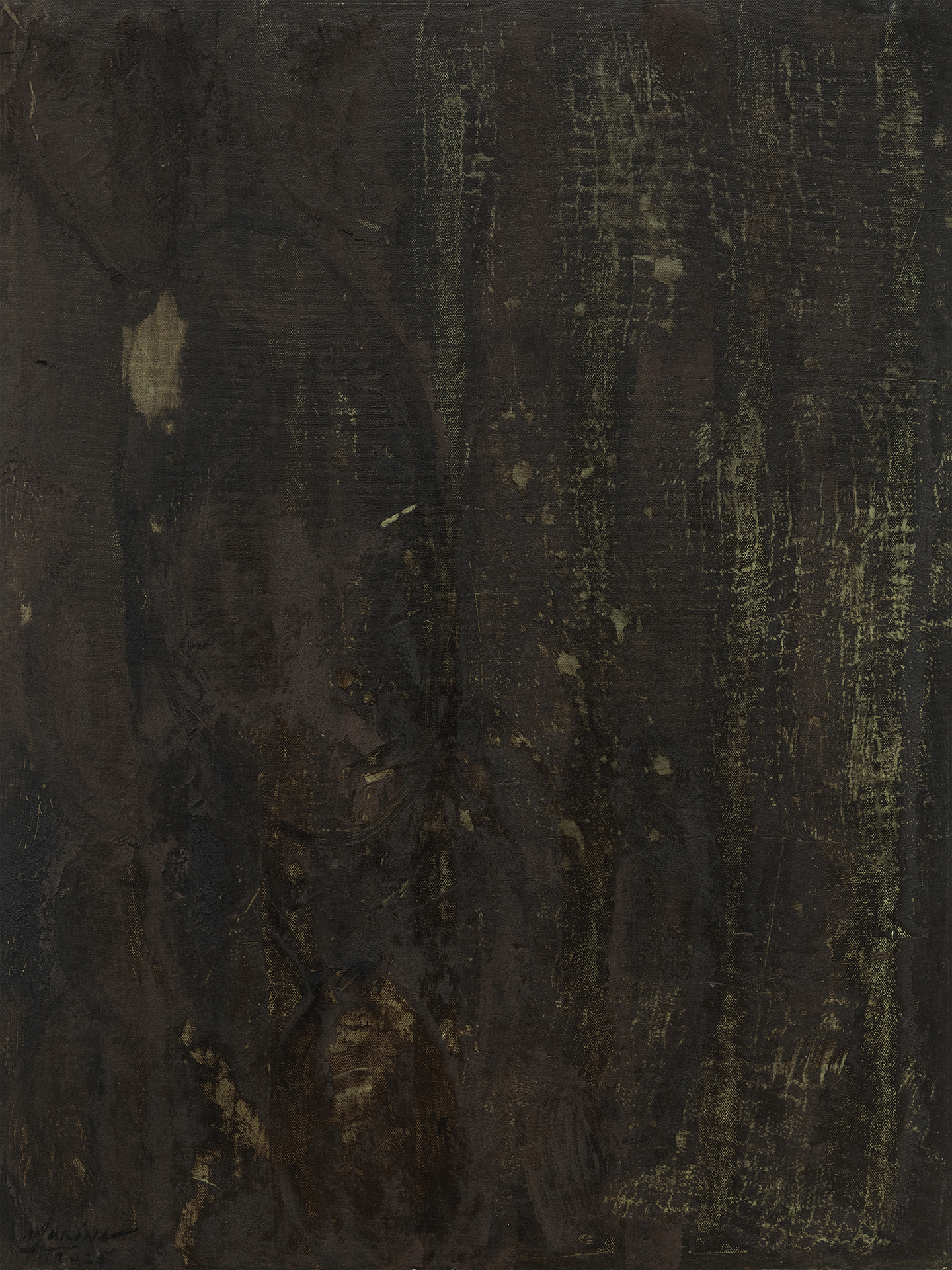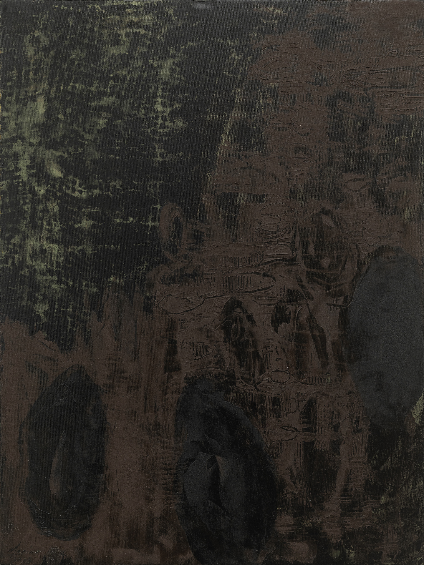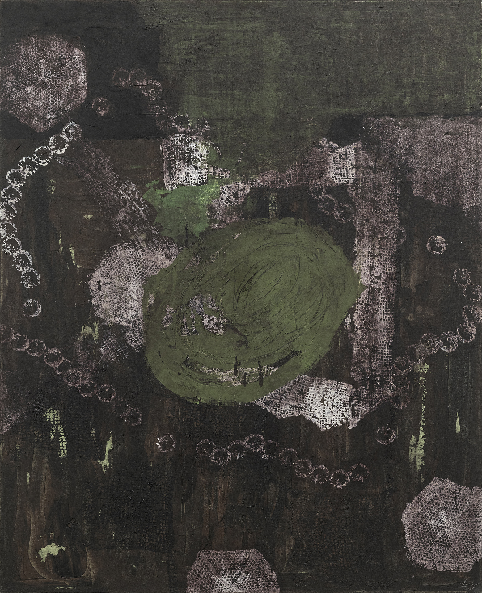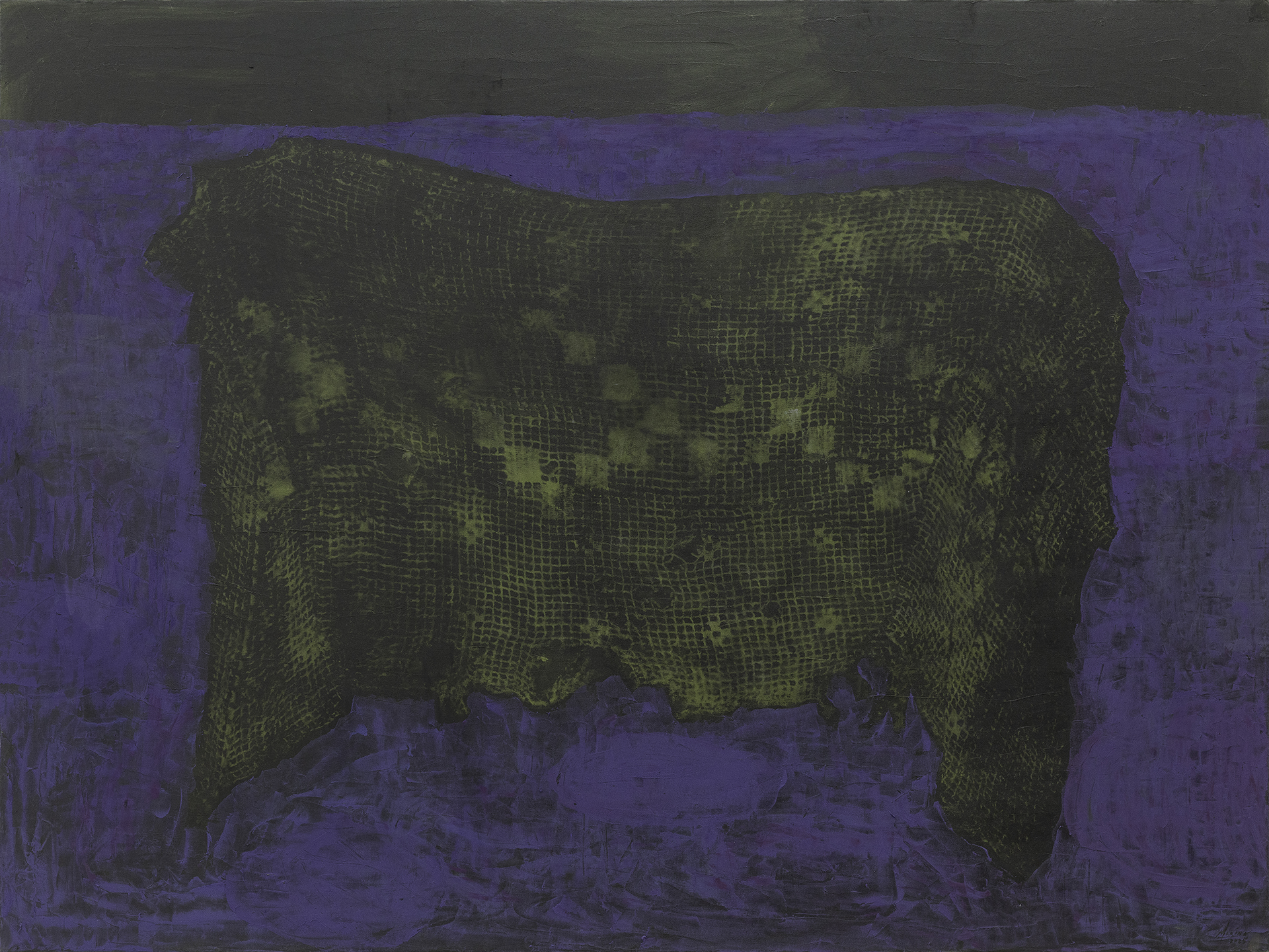 In A Veil Left by the Tides of Life, a veil floats on a sea of thick violet paint. In Veins of Bandages, a translucent cloth snakes through a plane, which is washed in dried-blood red.