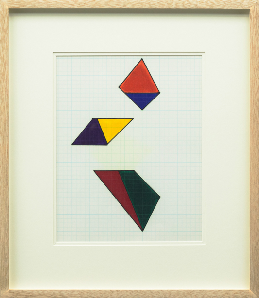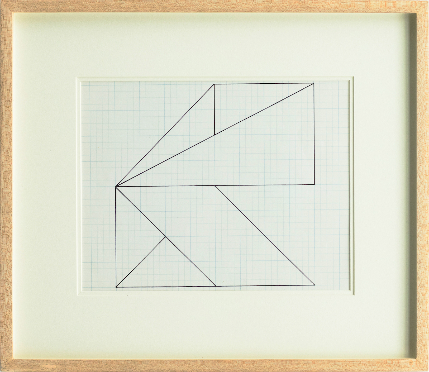 For both artists, drawing was not preparatory but generative, a complete act in itself. Valledor’s works show his architectural precision. Many are on graph paper, the faint grid acting as scaffold and rhythm. Using pencil and felt-tip marker, he found a beating tempo between order and improvisation, echoing the jazz that kept him moving. Some shapes fill with dissolving gradients and dotted passages that drift like little confetti rivers, revealing a quiet kinship with his beloved cousin, Villa.