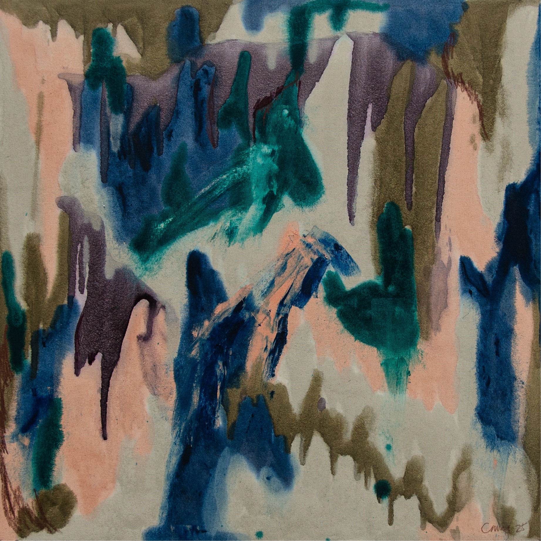 For her U.S. debut, Carina Santos presents her so-called “pour paintings,” evocative abstract paintings that employ material, gesture and chance to conjure up memories of terrains and skies.