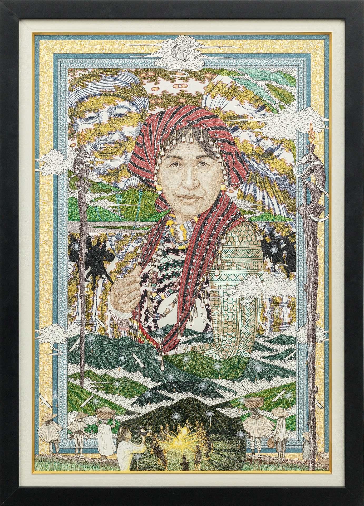 John Frank Sabado (b. 1969, Mankayan, Benguet, Philippines; lives and works in Baguio City, Philippines) is a self-taught artist whose works show a remarkable deftness at using the painstaking pointillist approach to forming images. Over the years, his works have become more textured and nuanced, revealing his intellectual and spiritual growth as an artist.